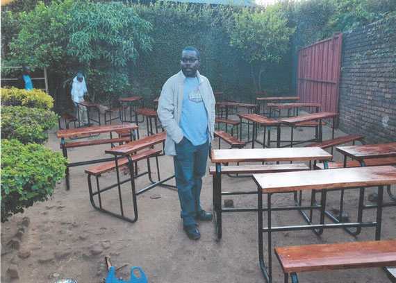 Bottom photo- George Mkoko inspecting the new desks at the workshop prior to delivery.